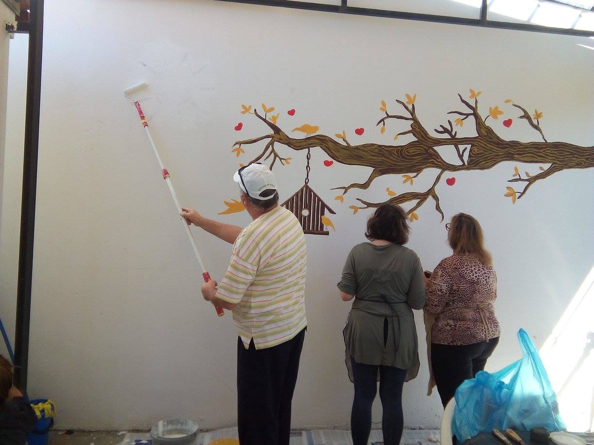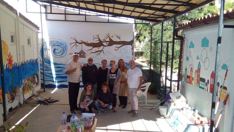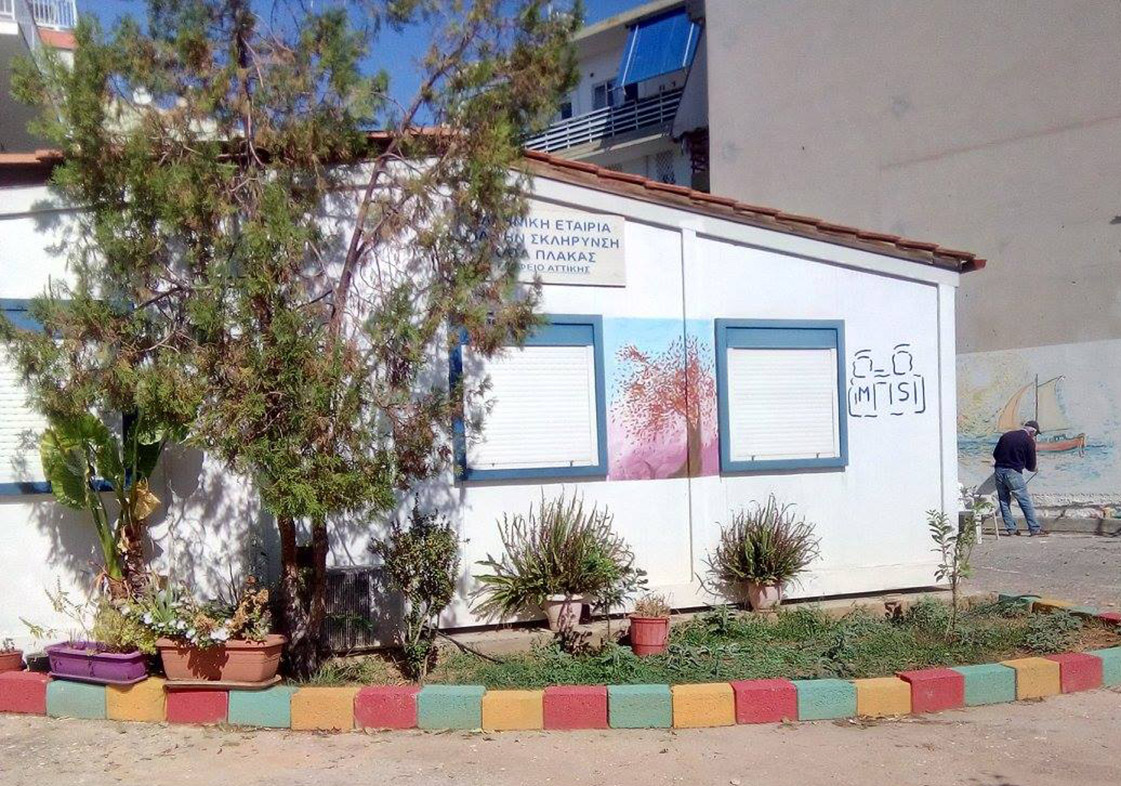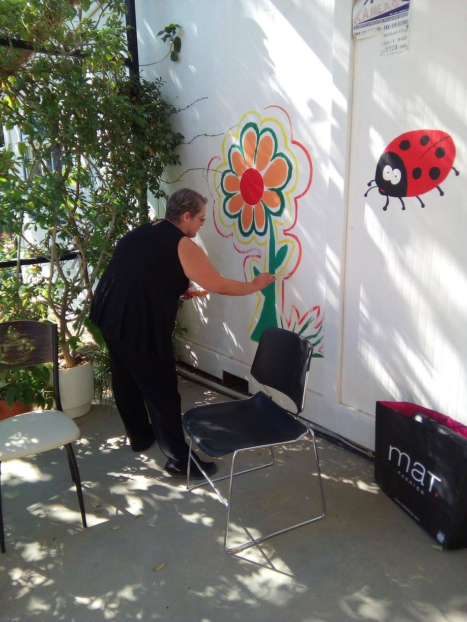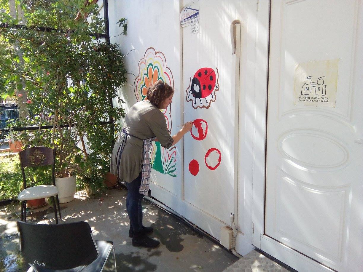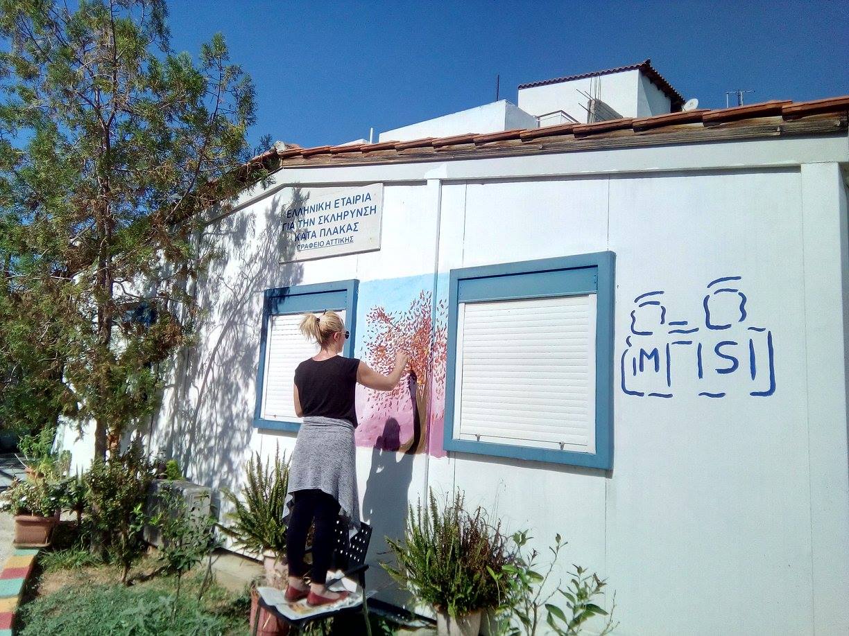 ζωγράφισαν θεματολογικά τον προαύλιο χώρο της Ελληνικής Εταιρείας για την Σκλήρυνση κατά πλάκας στην Λ.Βουλιαγμένης 50 & Λεωνιδίου στην Ηλιούπολη Αττικής την 14 Οκτωβρίου 2017 .