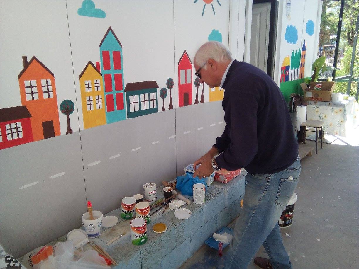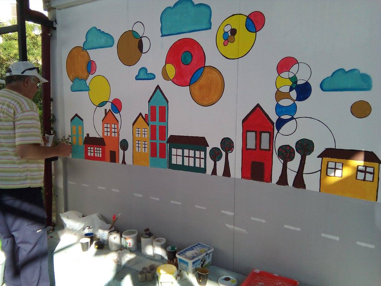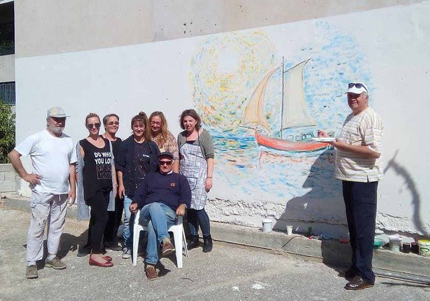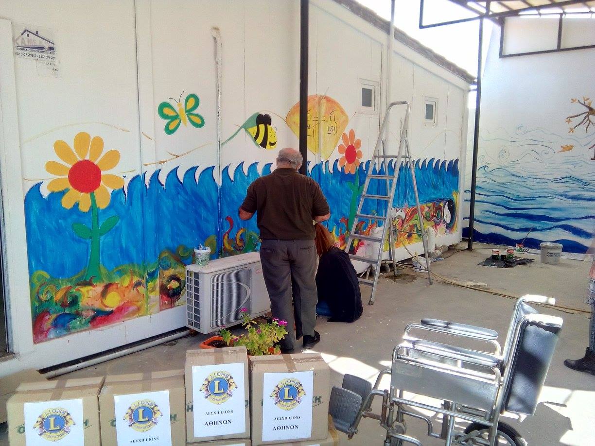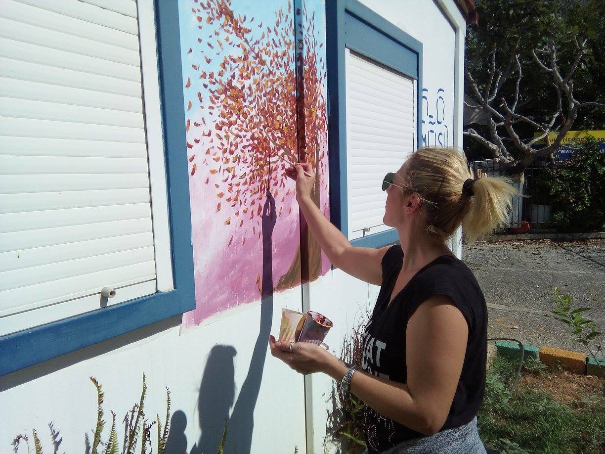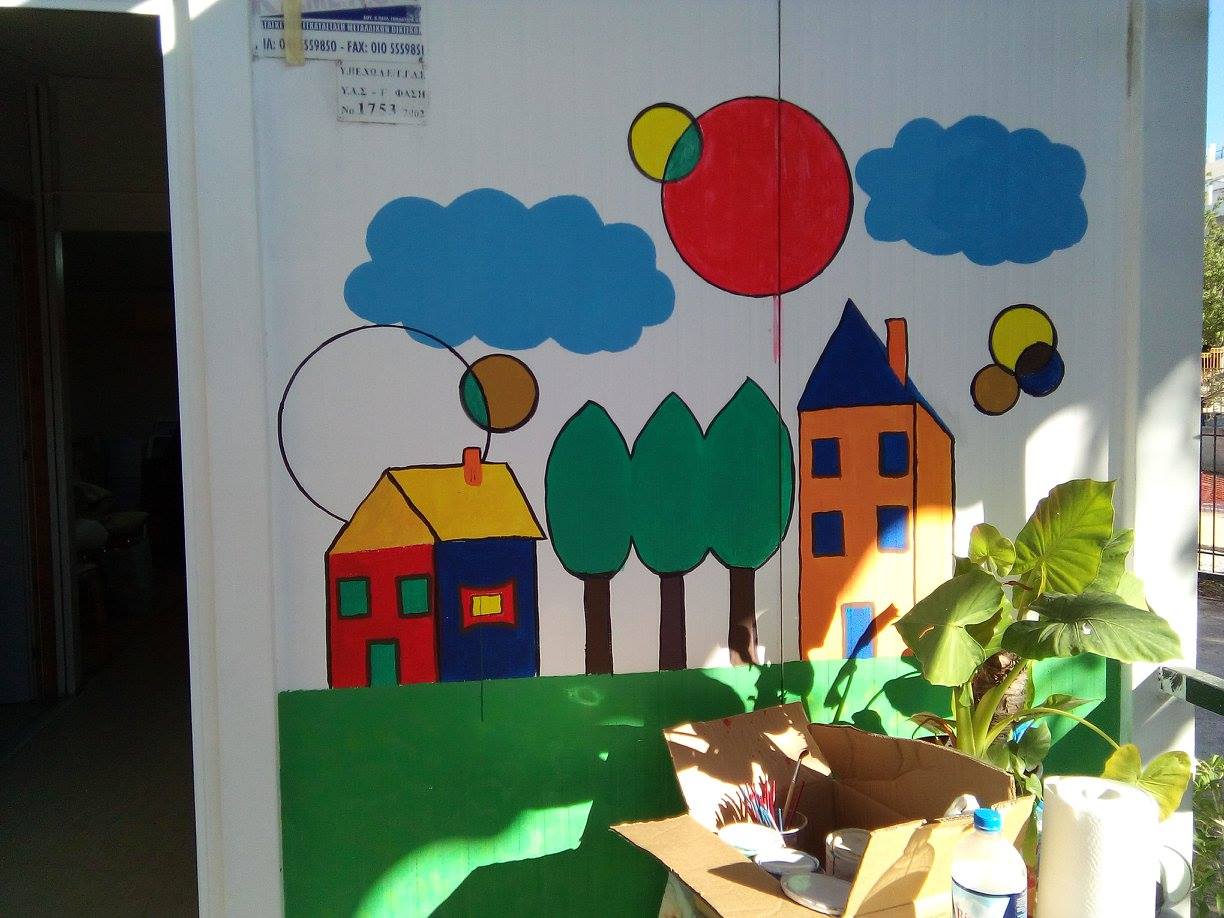 ζωγράφισαν θεματολογικά τον προαύλιο χώρο της Ελληνικής Εταιρείας για την Σκλήρυνση κατά πλάκας στην Λ.Βουλιαγμένης 50 & Λεωνιδίου στην Ηλιούπολη Αττικής την 14 Οκτωβρίου 2017 .