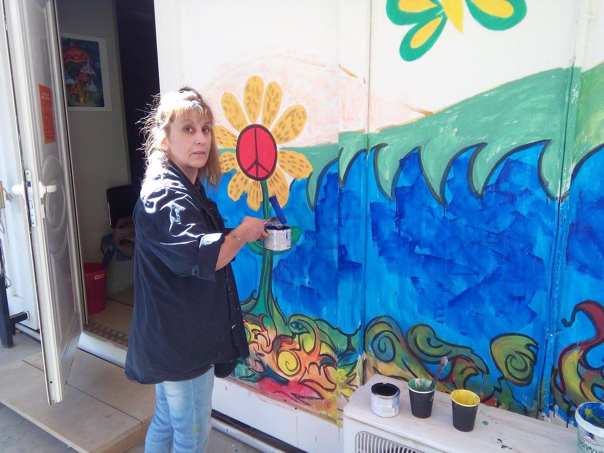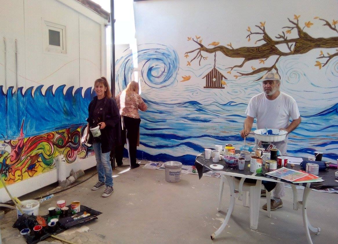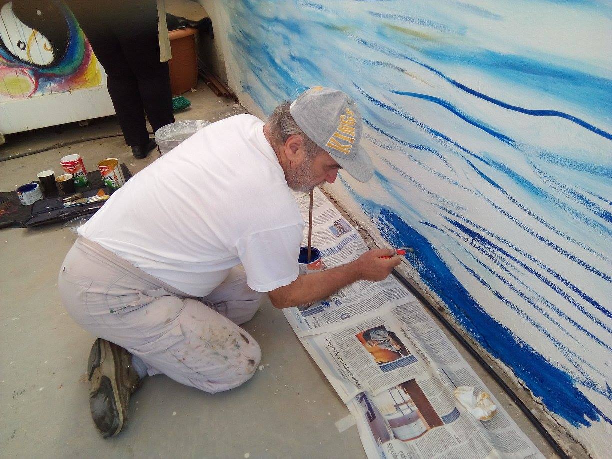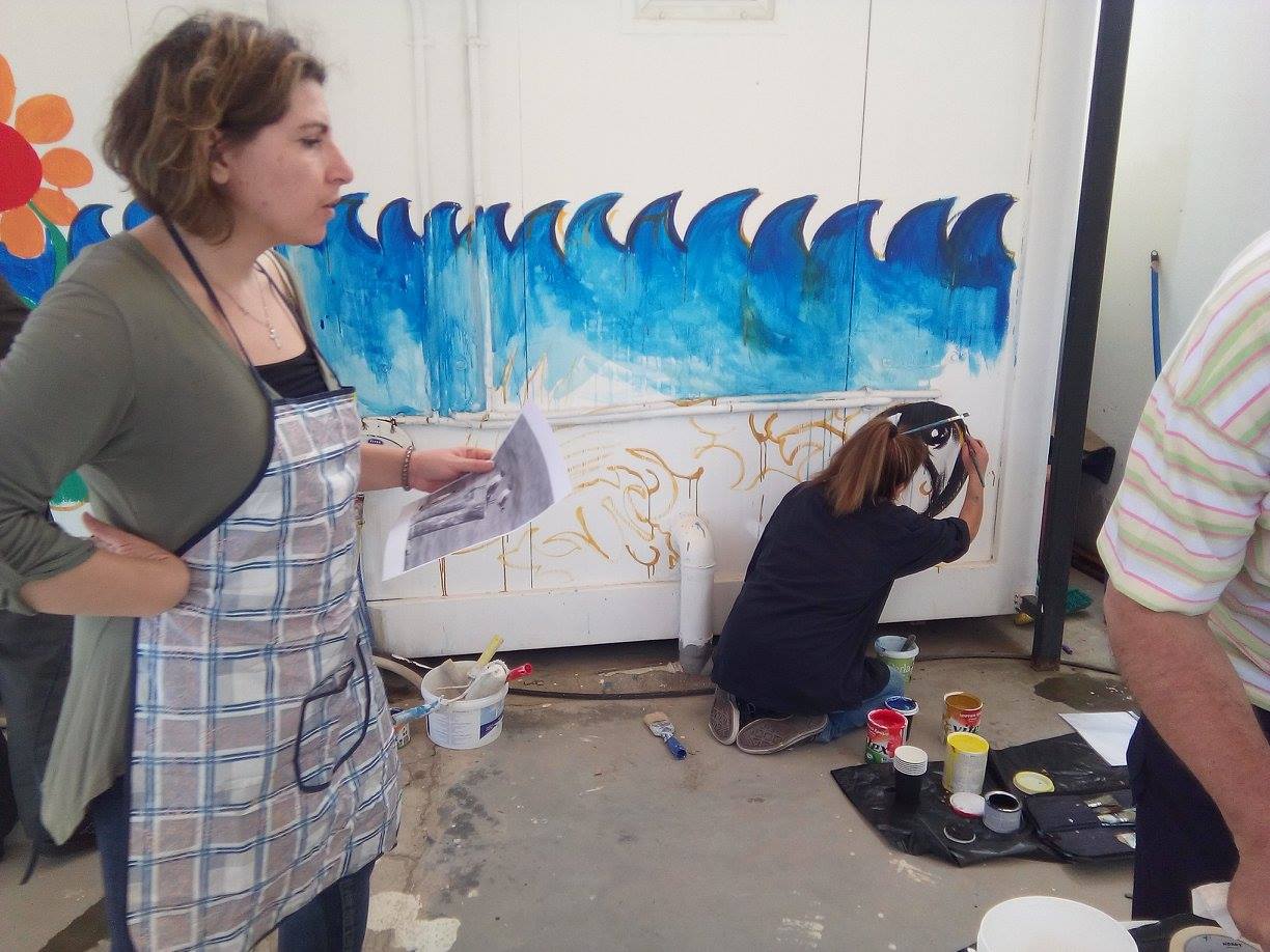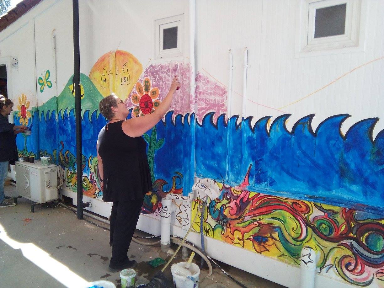 ζωγράφισαν θεματολογικά τον προαύλιο χώρο της Ελληνικής Εταιρείας για την Σκλήρυνση κατά πλάκας στην Λ.Βουλιαγμένης 50 & Λεωνιδίου στην Ηλιούπολη Αττικής την 14 Οκτωβρίου 2017 .