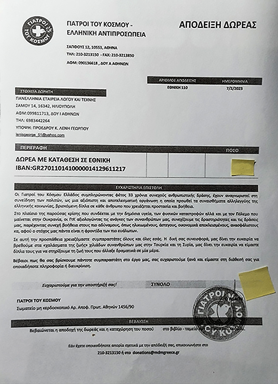 Η Διοικούσα Επιτροπή του γραφείου Αττικής της Ελληνικής Εταιρείας για την Σκλήρυνση κατά Πλάκας εξέφρασε τις θερμότερες ευχαριστίες της για την ευγενική προσφορά και το ενδιαφέρον της Π.Ε.Λ.Τ. συμβάλλοντας έτσι στην επιτυχία των στόχων και σκοπούς του σωματείου .