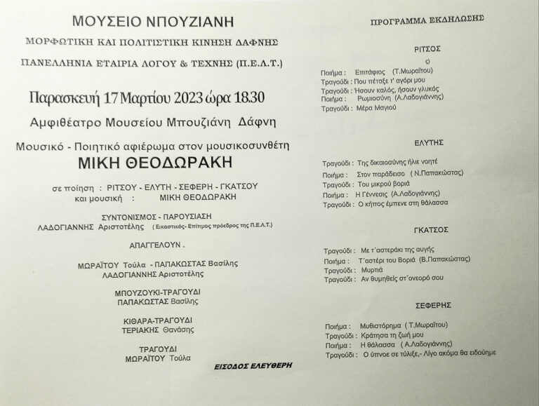 Συντονισμός-Παρουσίαση Αριστοτέλης Λαδογιάννης.