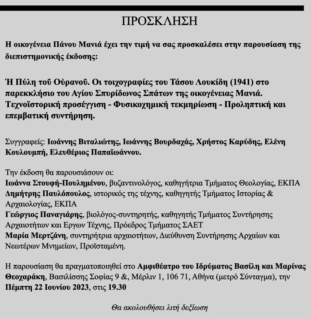 H παρουσίαση του βιβλίου ΠΥΛΗ ΤΟΥ ΟΥΡΑΝΟΥ έγινε στο αμφιθέατρο του Ιδρύματος Βασίλης και Μαρίνα Θεοχαράκη στήν ΑΘήνα.