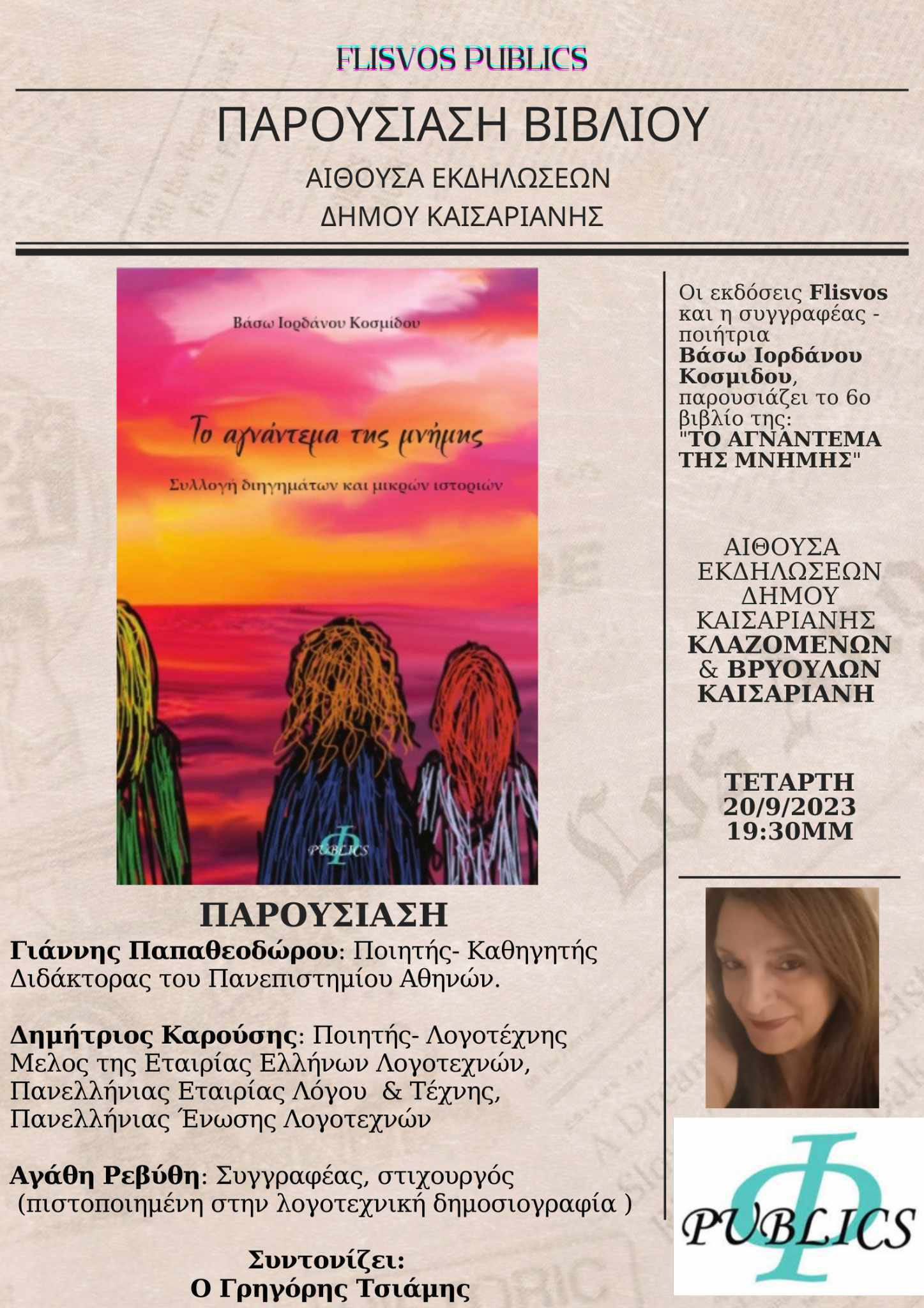 Η Βάσω Ιορδάνου Κοσμίδου με την νέα ποιητική συλλογή
